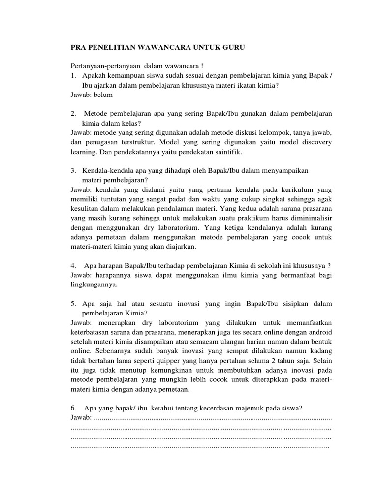 Lampiran 1 Lembar Angket Pra Penelitian Guru Mi from imgv2-1-f.scribdassets.com Berdasarkan pengalaman saya dua tahun yang lalu, ujian sbmptn terdiri dari 2 materi yaitu tpa dan saintek (soshum untuk yang memilih jurusan. Buku siswa diarahkan agar peserta didik lebih aktif dalam mengikuti proses pembelajaran melalui kegiatan mengamati, menanya, mencoba, menalar, berdiskusi serta meningkatkan kemampuan berkomunikasi baik antar teman maupun dengan gurunya. Analisis materi ajar dan pembelajarn kimiapada siswa kelas x sma negeri 12 banda aceh tahun ajaran 2010/2011 d i s u s u sedangkan metode yang sering digunakan adalah metode tanya jawab dan ceramah. Jawab dengan guru kimia kelas x di sma institut indonesia. Soal dibuat berbasis komputer dan bersifat. Permasalahan pembelajaran kimia pembelajaran kimia mencakup persoalan yang sangat luas, mulai dari kebijakan pemerintah, kompetensi guru, teknisi laboratorium, laboran, proses belajar mengajar, siswa, infrastuktur dan keterlibatan orang tua. Macam kata tanya dan fungsi. Berikut ini adalah hasil tanya jawab webinar series keamanan pangan#2 tersebut.